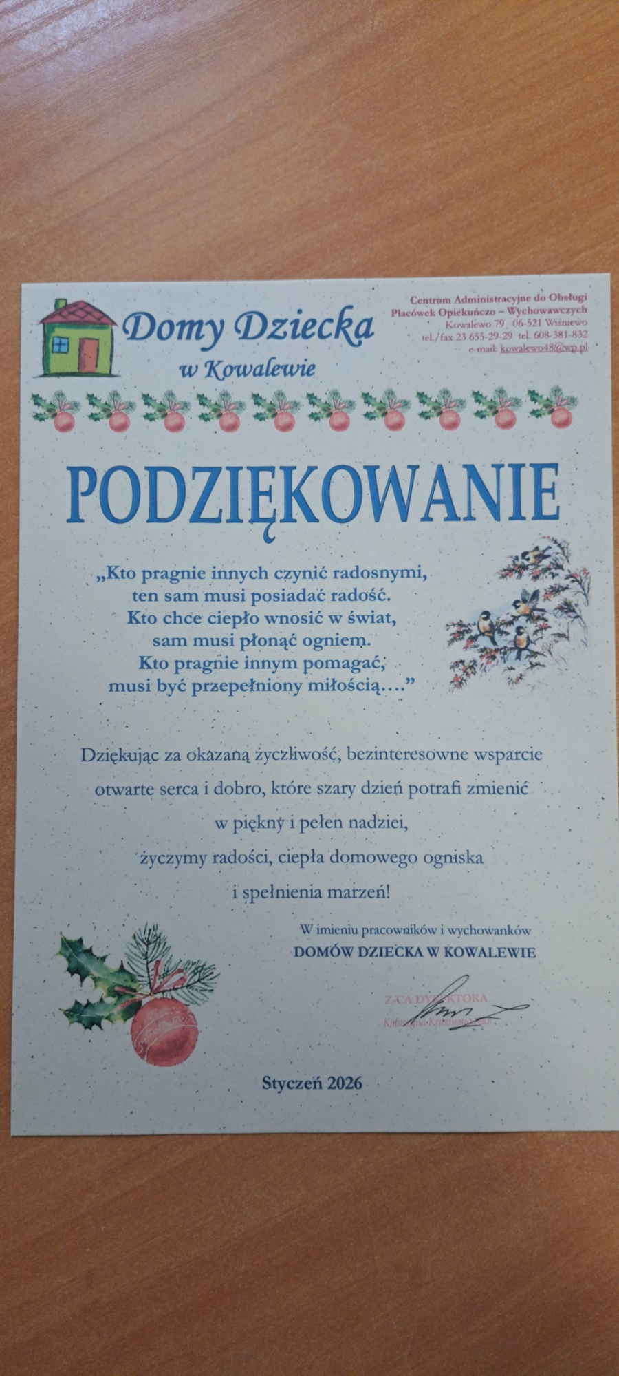 Serdecznie dziękujemy za okazaną hojność.